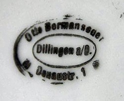 Base ink stamp on featured stein. Donaustraße 1, Dillingen an der Donau.