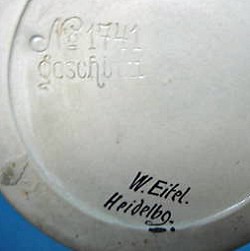 Artist's signature on the base of a Reinhold Merkelbach or Steinzeugwerke #1741 stein, designed by Richard Riemerschmid, dated 1911 - 1915/16.