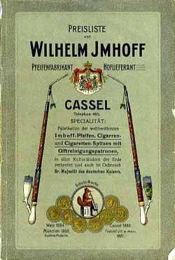 Cover from the 1910 catalogue. N.B. Note the spelling, Jmhoff. I & J are interchangeable in German, so therefore it is pronounced Imhoff.