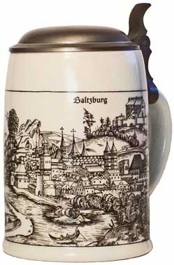Porcelain souvenir stein from Salzburg, circa 1970.