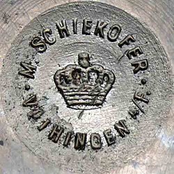 M. Schiekofer lid on 6/20L Sachsenglas stein, dated 1897 onward.