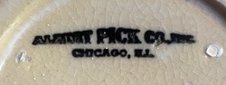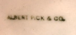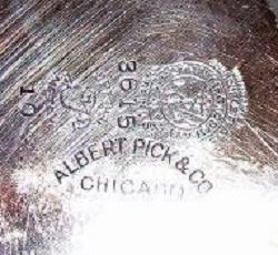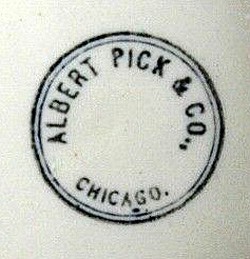 Founded in Randolph Street in 1857 by Albert Pick and his younger brother Charles. The business was destroyed by the Great Chicago Fire in 1871. It was rebuilt with Charles taking over the company by 1874. In 1892, Albert's son, Albert Jnr. (b.1895) assumed control of the business. In 1926 the business was purchased by a banker's partnership and was then renamed Albert Pick & Co. Inc. This allowed Albert and other members of the Pick family to concentrate on their chain of seven hotels. This grew to the 3rd largest hotel group in the U.S. but went out of business in the 1960's, and Albert died in 1977.