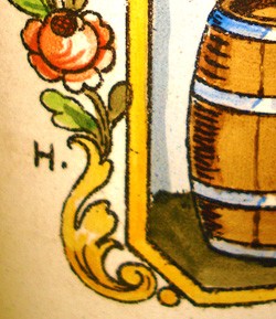 The "H" of HW on the left hand side of the tableau of the featured stein.