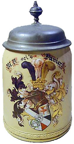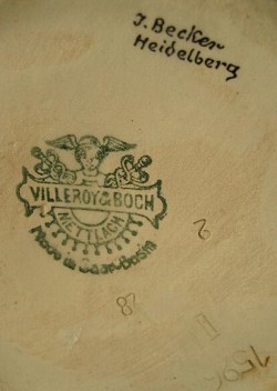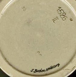He, however had retired by 1907 because his son Adam Jakob Becker, also a Master Turner, was now running the business. The company also advertised for the first time, as painters of coats of arms in 1907, but it is well documented that they had carried out this profession for many years previously. Jakob Becker Snr. presumably died since his personal listing disappeared from 1917. The business continued as a Dreherei, Elfenbeinschnitzerei und Wappenmalerei until around 1922, when Wappenmalerei was dropped from the listing, although steins were painted after this date. Elfenbeinschnitzerei also disappeared in 1939, when A.J.Becker listed himself solely as a Drehermeister. He sold Hauptstraße 153 to Bezirkssparkasse Heidelberg / the District Savings Bank of Heidelberg in 1940, but rented back the first and second floors. From 1941 he called himself the subtly different title of Drechslermeister and the business became an Elfenbeinschnitzer und Elfenbeinwarenlager, possibly to sell existing stock. The last known recorded date was 1943.