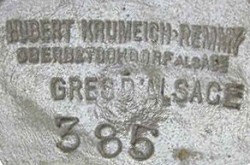 The business was founded sometime in the late 19th Century and operated until 1922, at which point they joined the co-operative "Poteries reunies des Betschdorf" which traded from 1922 - 1969. Hubert Krumeich-Remmy, as the name implies, was decended from the Krumeich and Remmy families. We know about the Krumeich's, who ran a pottery from the eighteenth century and whose family begat