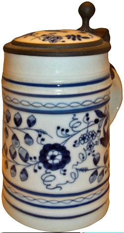 Blue onion style stein, dated 1900 - 1920