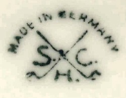 Swaine & Co. was founded in 1854, then in 1920, merged with Gebrüder Schoenau Co. (founded as Greiner und Künzel, in 1817) to become Porzellanfabrik Gebrüder Schoenau, Swaine & Co. o.H.G. with nine kilns produced porcelain, electrical engineering, utility and luxury tableware. They were unsuccessfully taken to court by the