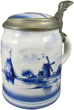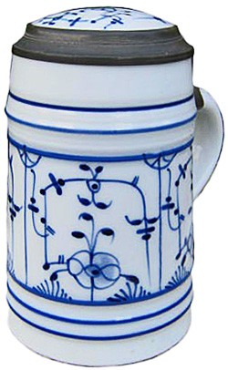 Pre 1920 porcelain stein decorated in "cornflower" blue and white.