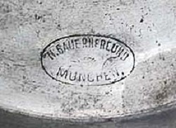 The brothers Leopold (b.1850-d.1920) and Nathan Bauernfreund (b.30th May,1853-d.1925) came from Ellwangen in Middle Franconia, where a Jewish community had existed, with interruptions, since the Middle Ages. Leopold and Nathan Bauernfreund moved to Munich as young men and together opened a dry goods and fashion accessories business in 1876. In 1883, the two brothers were jointly registered as the owners of the cast-pewterware factory "Zinngusswarenfabrik L. Bauernfreund & Cie." at Frauenstraße 4c.