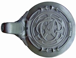 Top view of custom pewter lid designed for this featured celebratory stein.