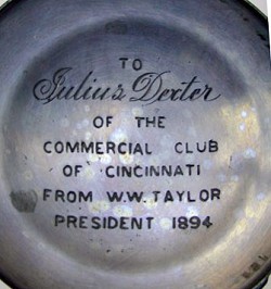 Inscription on the underside of the lid of the featured stein. "To Julius Dexter of the Commercial Club of Cincinnati. From W.W. Taylor, President 1894." Whilst the celebration was held in 1895, it was for the members of 1894.