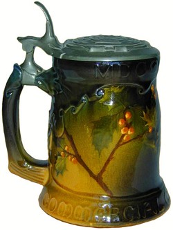 Another example of the same stein (mould #783), again in the standard glaze and presented to Howard Hinkle, a member of the Commercial Club of Cinncinati, showing an alternate decoration, by Margaret McDonald.