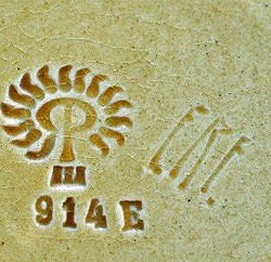 N.B. The reverse "R" adjoined to "P", denoting Rookwood Pottery, mould #914E. Next to the manufacturer's mark is the signature of Edith Regina Felton.