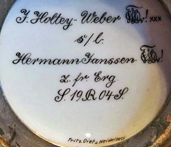 The business was founded in 1892 by Fritz Dietz working out of his residence at Grabengaße 2, until 1896, when he purchased the similar business of Joseph Carl Schirmer. This was just around the corner at Hauptstraße 149, which is adjacent to the old Heidelberg University. He also purchased Hauptstraße 138, in 1900, and moved the business there in the following year, at the same time changing the company name back to Fritz Dietz. In 1904 he became a Master Bookbinder and over the years expanded his product range to cover picture framing, fashion accessories, jewellery and other luxury items. Finally in 1922, he included office products. There was no market after the mid 1920's for luxury items, so he reduced his range to his original two core products. His son, Hans came into the business around 1923 / 24. Fritz must have retired around 1930, since book-binding disappeared from the product range. Also the business was listed in Hans's name between 1931 & 1933, but curiously reverted back to Fritz in 1934. The business closed in 1938, with Hans moving to Mannheim-Weisenau. He initially rented the shop in 1939, to antiques dealers, Kurt & Anna Winnikes, but in 1943, Anna Winnikes purchased the freehold.