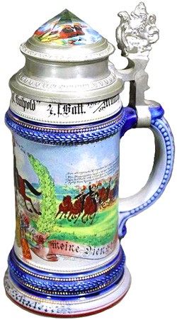 The King's1st Royal Bavarian Infantry Regiment. 5th Company, garrisoned at Munich 1903 - 1905. This stein is also signed by Gebrüder Bergmann, presumably to be sold through their shop.