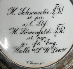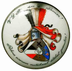 Porcelain insert on glass stein, depicting VDSt Halle Wittenberg. "V.D.St. sei´s Panier - Robora virorum nutabant stabat juventus!"