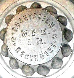 Cast Pewter Mark on "stacked bullet" lid on Regimental representing the 5th Lothringen Infantry Regiment, attached to the 33rd Division of the 16th Army Corp. Dated 1913. Wilhelm Peter Kipper in Metz