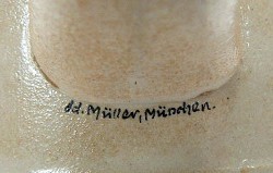 Ink written signature below handle of the featured student stein, dated 1914.