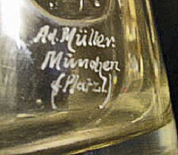 Etched mark on glass student stein, dated 1907. The word Platzl could refer to the The Hofbräuhaus am Platzl, a beer hall in the city centre of Munich.