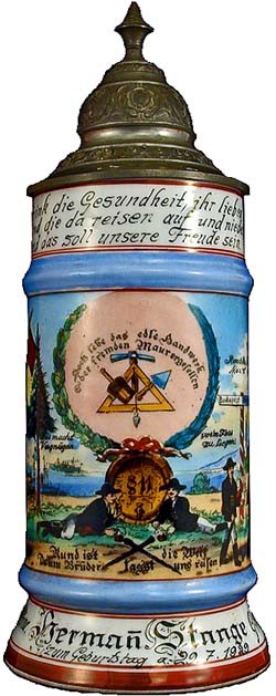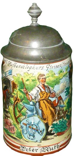Occupational stein celebrating the graduates of the class passing out of the State Farrier / Smithy Class, in Geißen, Upper Hesse (now Hesse), dated the 31st November 1933.
