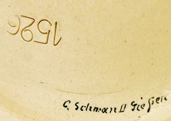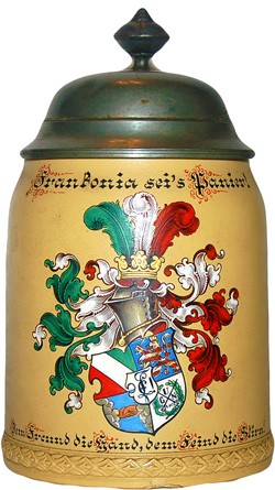 Villeroy & Boch - Mettlach #1526, dated 1905. "Frankonia sei's Panier!""Dem Freund die Hand - Dem Feind die Stirn"To the friend a hand - To the enemy a frown