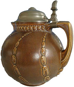 Steinzeugwerke made by by Reinhold Merkelbach, in Braun geflammt (Flamed Brown) designed by Paul Wynand, who designed the original S.P. Gerz mould, dated 1905 - 1910.