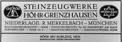 Steinzeug-Industrie G.m.b.H. before 1918. Steinzeugwerke ceased operating in 1921, and was wound up in 1936.
