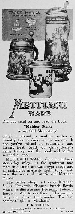 They were still Villeroy & Boch distributors, but no magazine advertising of Mettlach ware, has been seen with this later address.