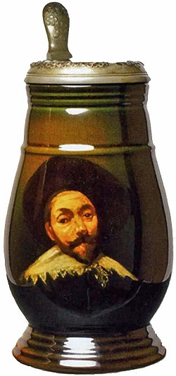 Rookwood Standard Glaze. Lidded Stein with inlay, portrait of Rembrandt. Dated 1895.