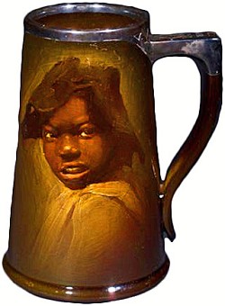 Rookwood Standard Glaze. Portrait Mug - Black Boy, with silver mounts. Dated, 1900.
