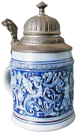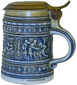 The glass steins, employing the same method of hinge fitment, came from other suppliers, presumably