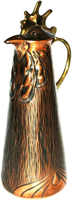 Jugenstil hammered copper Cockerel jug.