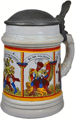 Featured stein made elsewhere, then ink stamped W/MF