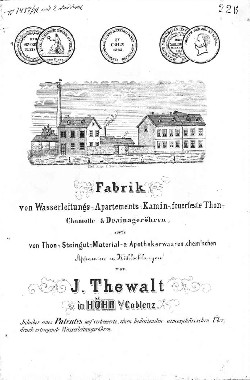 Johann Jakob Thewalt was born on 10th June 1823 and died on the 13th March 1904. Jakob took over his father's tube factory, J. Thewalt, (founded 1802), in the 1840's. This company was independent of both A.J.Thewalt & J.P.Thewalt. He was probably the brother of