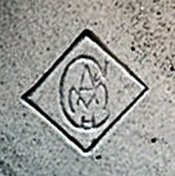 This mark is thought to be the pre 1936 mark for August Corzelius-Mennigen. "A" and "M" intertwined, with an "H" below, all inside a "C", which in turn is inside a diamond shaped box.