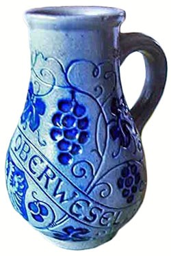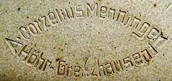 Impressed mark on featured wine jug, dated 1936-1971. The villages of Höhr, Grenzhausen & Grenzau combined in 1936, to form the modern town of Höhr-Grenzhausen.