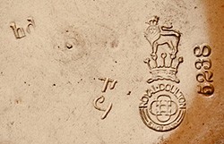 Mark on the stein above is dated for 1880 - 1902, although after 1891 "England" was included. It is assumed that the date of this piece is 1881.