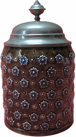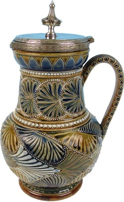 Lidded serving tankard, dated 1876 Made by Edith D. Lupton of Doulton, Lambeth.