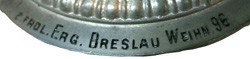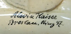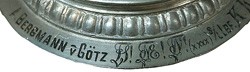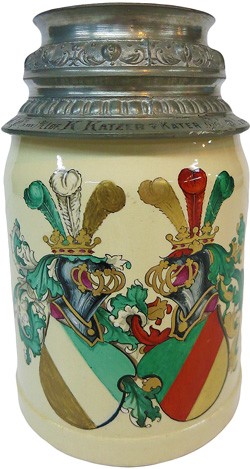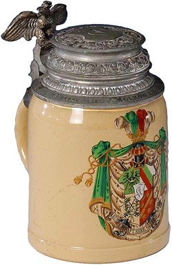 Since Alwin Kaiser was an engraver, he always engraved the dedication on the lid rim, as opposed to the usual stein body. It is unknown who applied the "Wappen".