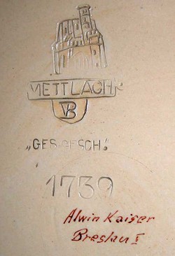Basemarks on Villeroy & Boch - Mettlach #1526, showing date numeral for 1896.