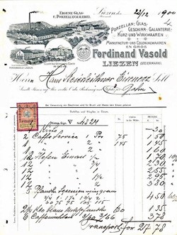 Ferdinand Vasold was born, in Stainach, about seven miles from Liezen, on the 15th September 1841. He married Theresia Keller and had three sons, Ferdinand, Franz and Alois. He was mayor of Liesen from 1871 to 1874 and served on the council after that. He handed his business over to his sons in 1911 on his seventieth birthday. He died 20th December 1921.