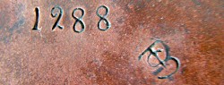 Cast mark on the underside of the lid on #363, dated post 1895.
