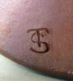 Mark taken from a moulded girl's face, paper weight, in Terra Sigillata, by Peter Dümler, piece dated 1909.