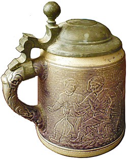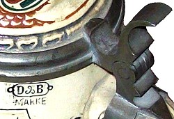 Very early Dümler & Breiden 1/2 litre stein. Peter Dümler's PD signature is adjacent to the lower handle attachment.