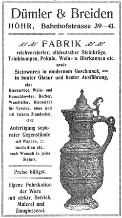 Peter Dümler (b. 7/11/1860 - d. 19/04/1907) and his brother in law Albert Breiden (b. 12/06/1860 - d. 27/05/1926) commenced manufacturing around 1883.