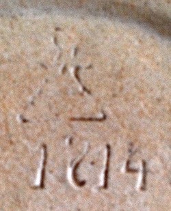 Impressed Terra Sigillata mark on serving jug. dated, from around 1907 to the early 1920's. D&B Höhr mark, considered to be 1907 - circa 1915.