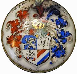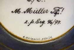 Student stein lid, of the Corps Tigurinia, Zürich, dated 1897. This corps was in existence from 11/11/1850 to c.1940. On 30/6/2007 a new Corps Tigurinia was inaugurated using a slightly different zirkel. Reference: Corps Tigurinia Wikipedia