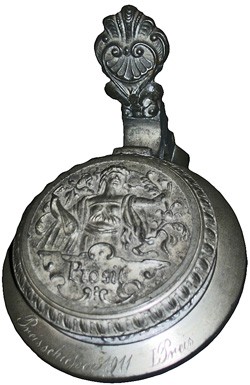 Joseph Aicher was born on the 11th May 1833, in Rosenheim, son of the master pewterer Joseph Aicher and his wife Theresia, née Ammann.On the 5th August 1862 the licence and the tin caster's concession was conferred on him in Ingolstadt. On 9th September 1862 he married Katharina Erdinger (b.31st March 1832), daughter of the pewterer Georg Erdinger in Ingolstadt and his wife Barbara, née Eder. The married couple had four children:
