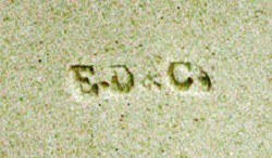 Highly stylised ink stamp "E.D.& C." together with a circular "Made in Germany", which often appears just by itself, or in conjuction with an impressed E.D.& C. or a vendor's mark.