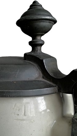 Details of thumb pull and rear of lid together with the 1/2 litre capacity mark.